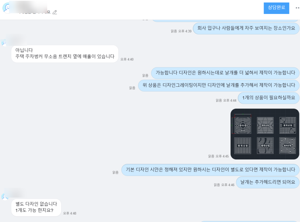 기본적으로 즉시 제작 가능한 도면 시안 8종이 고객 전용 게시판에 게시되어 있습니다.