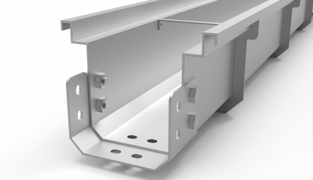 그레이팅 아래에 설치되어 물의 흐름을 원활하게 해주는 스틸 배수로는 눈에…